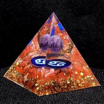 พีระมิดคริสตัลบำบัด 50 มม. 60 มม. 12 ราศี พีระมิดคริสตัลออร์กอน ออร์กอนไนต์ สำหรับการทำสมาธิ